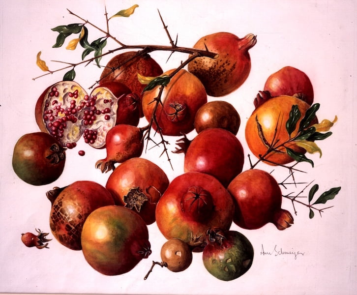 Ann Schweizer, Pomegranates Punica granatum. Watercolour on paper